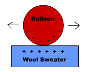 a balloon on a wool sweater. The balloon collects negative electrical charges