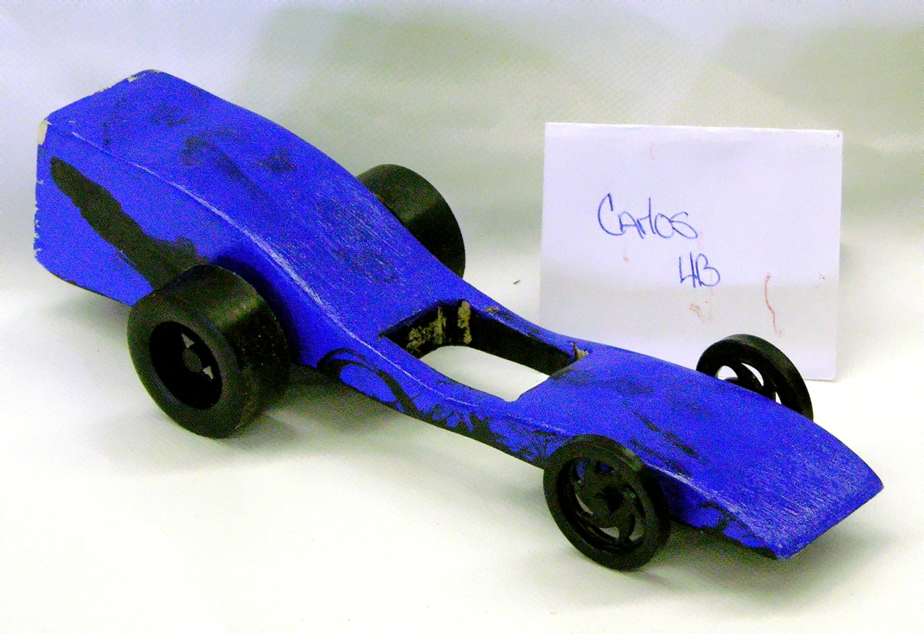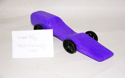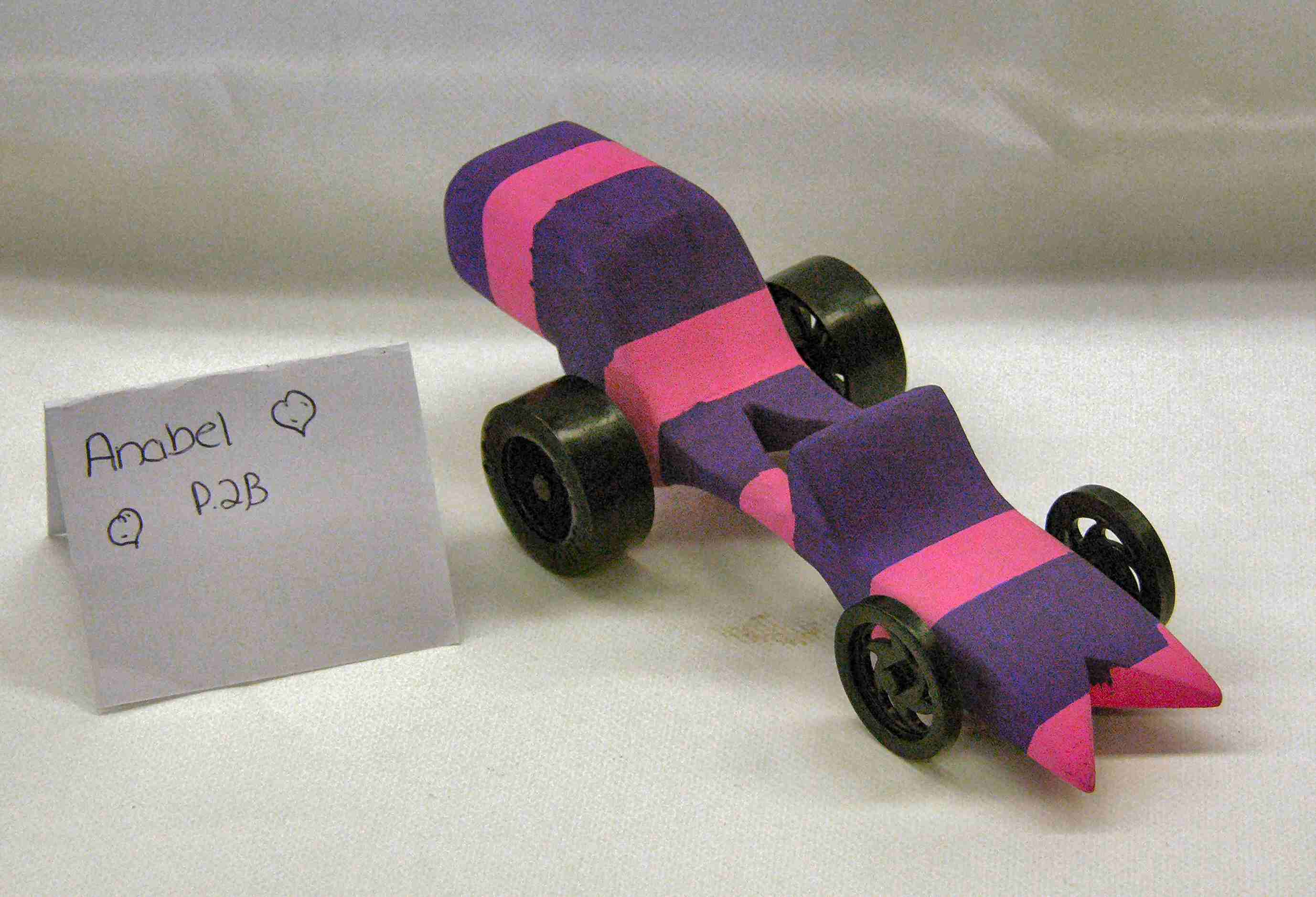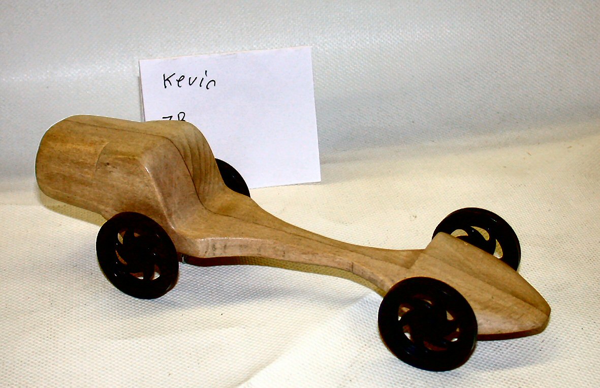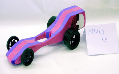 Students start with a block of wood, they shape it, drill holes for axles and a CO2 cartridge.