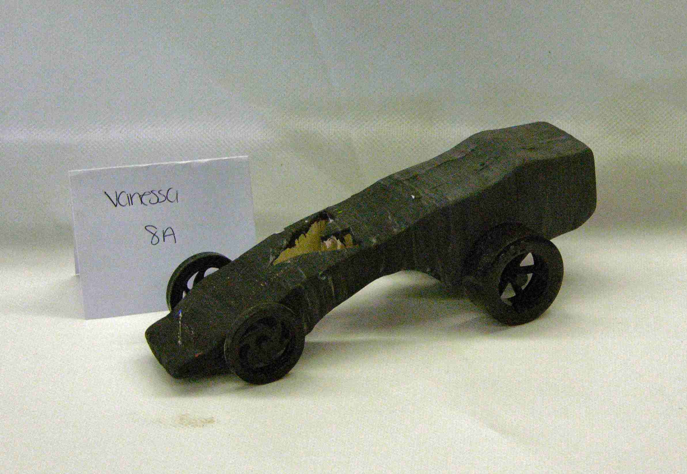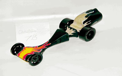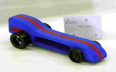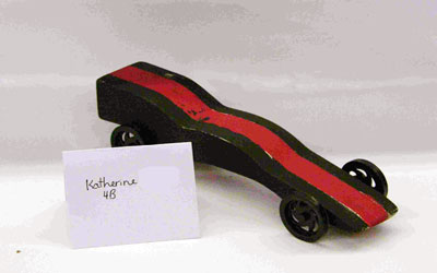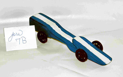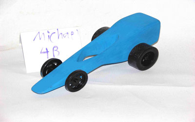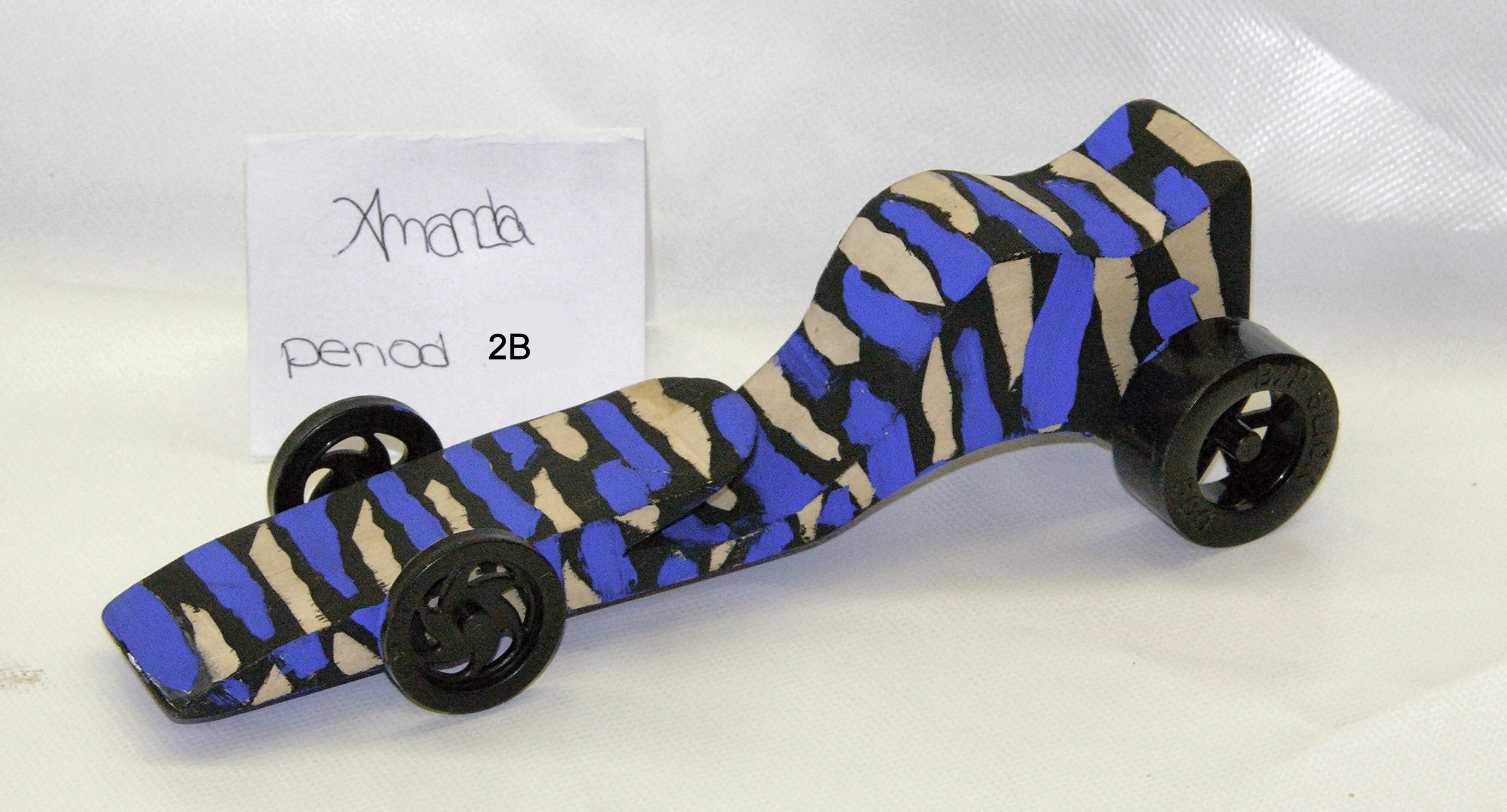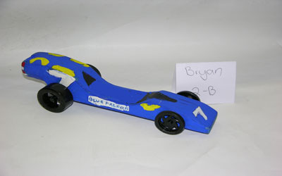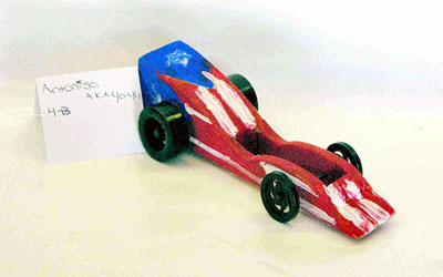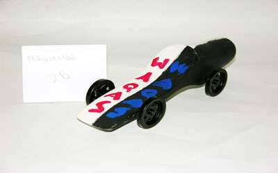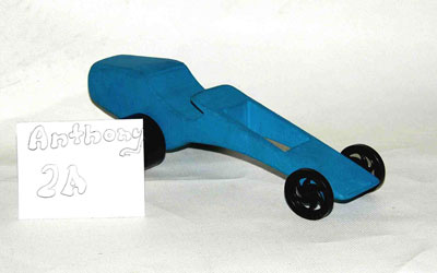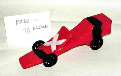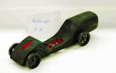 Students start with a block of wood, they shape it, drill holes for axles and a CO2 cartridge.