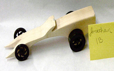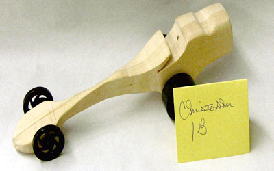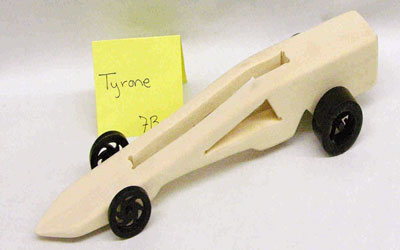 Students start with a block of wood, they shape it, drill holes for axles and a CO2 cartridge.