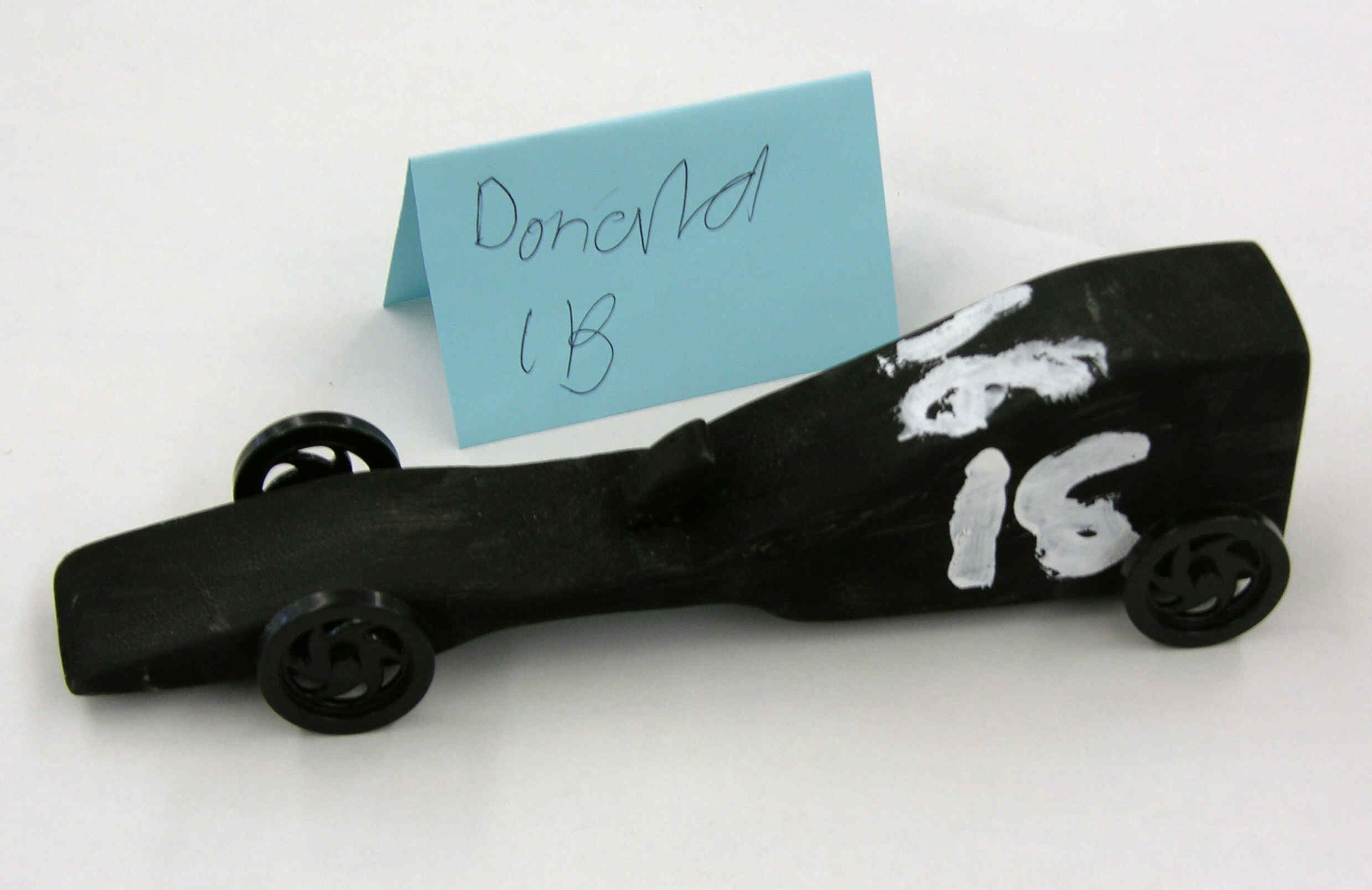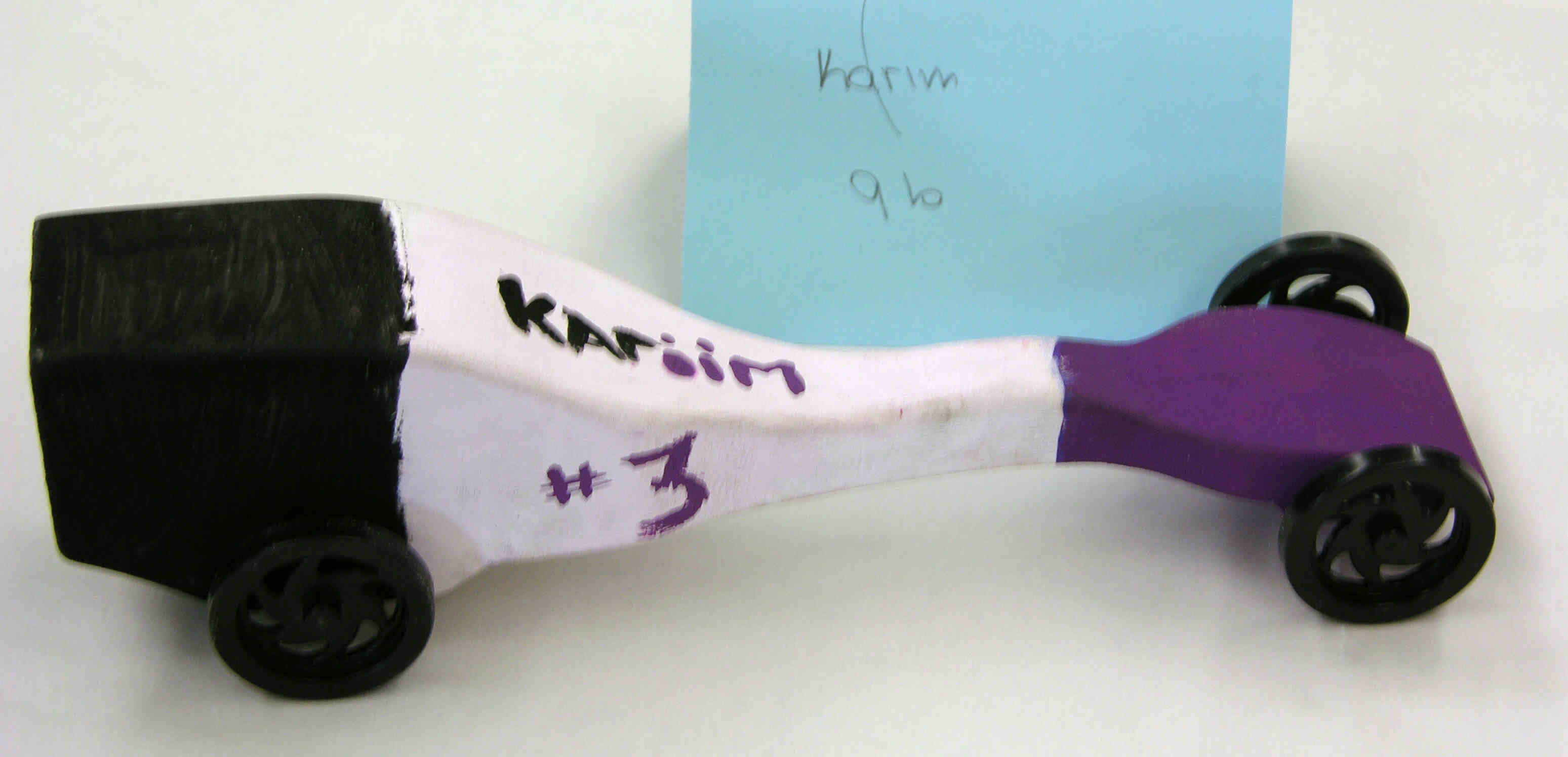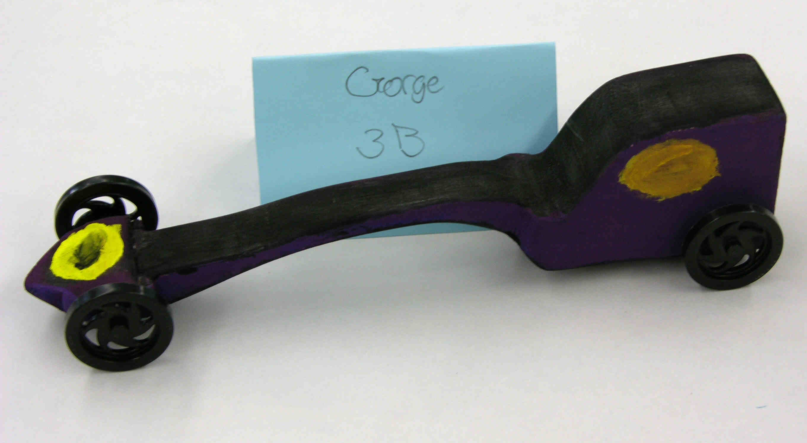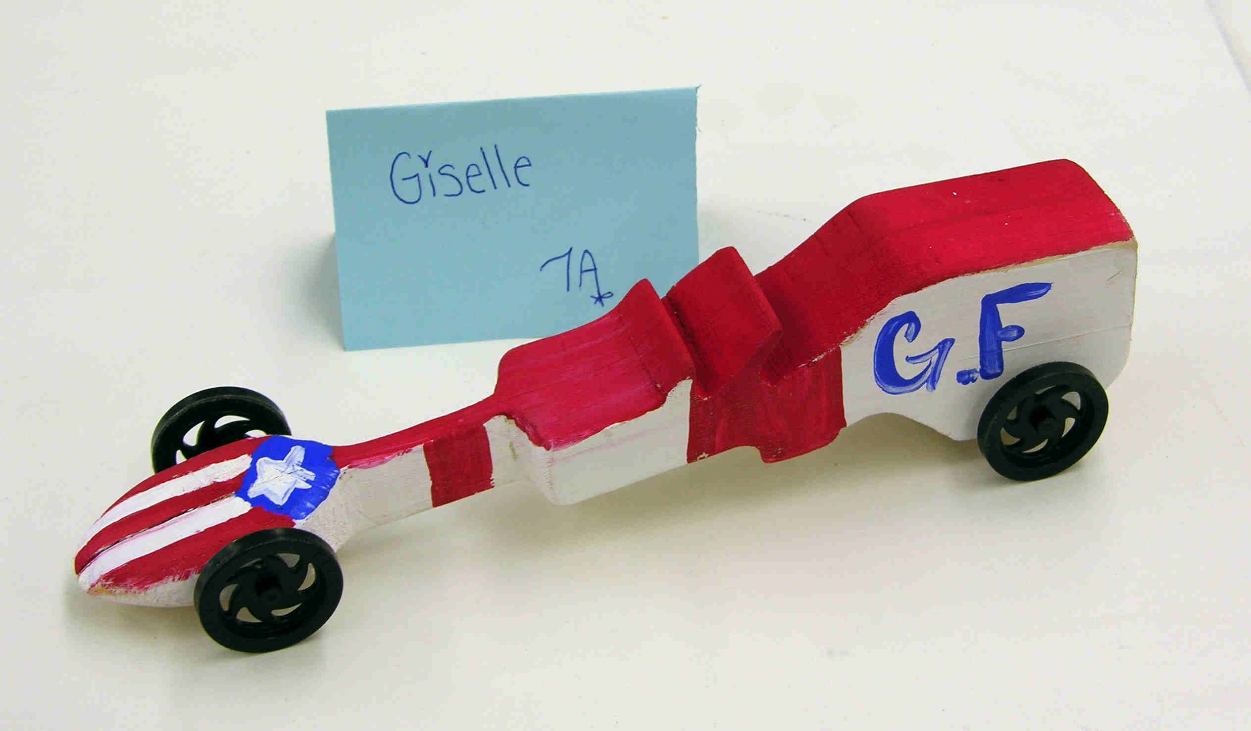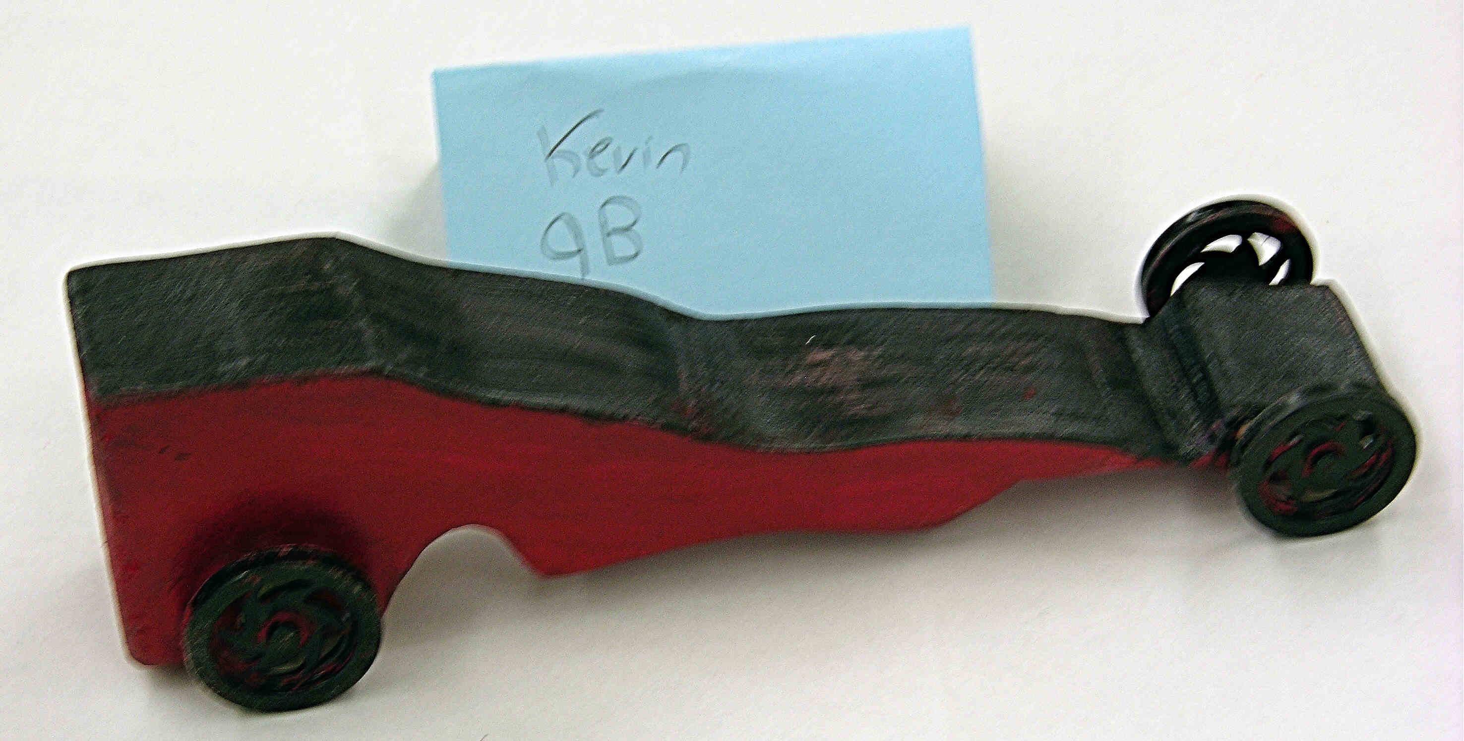 Students start by brainstorming for ideas incorporating aerodynamic designs. Then with a block of wood, they shape it,