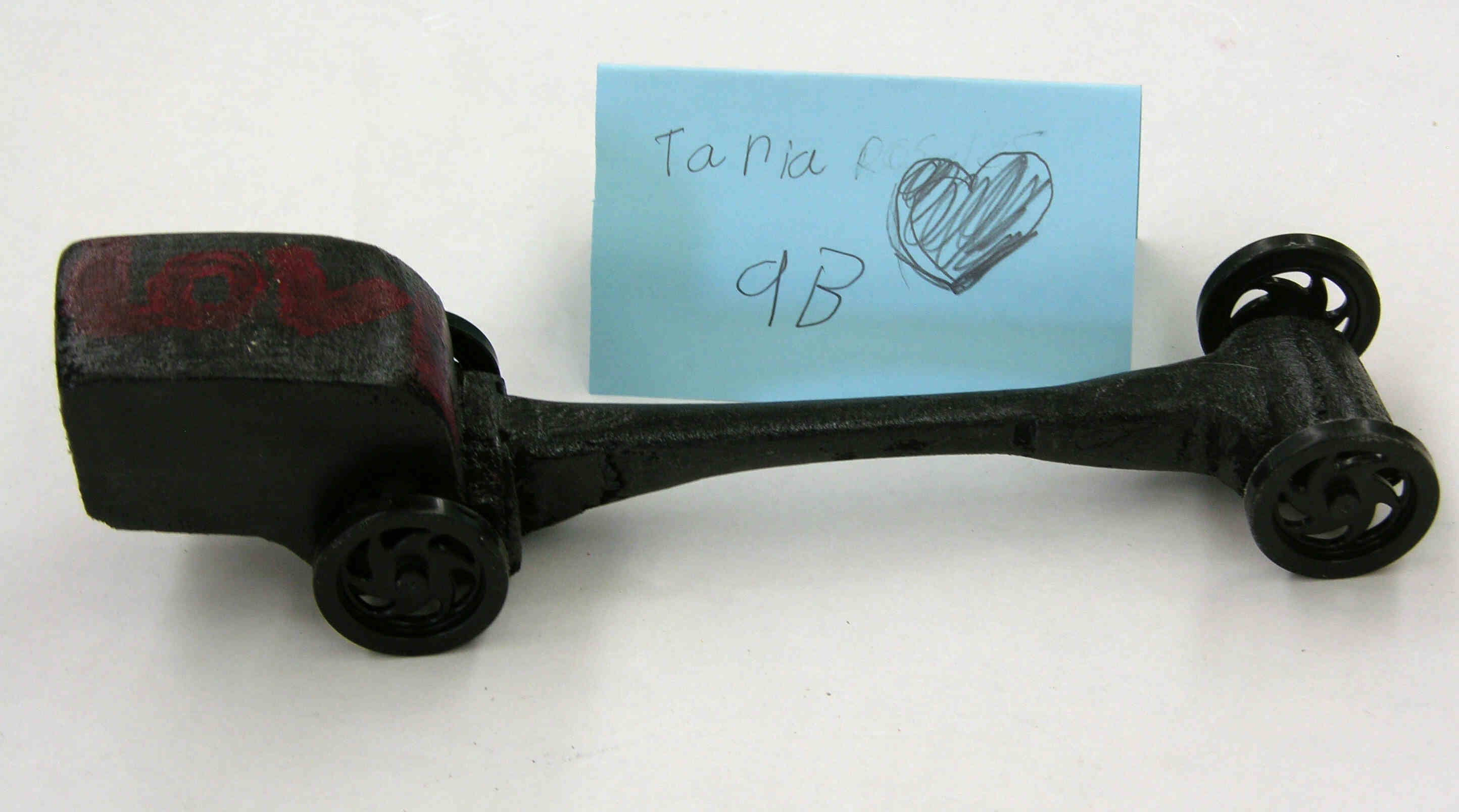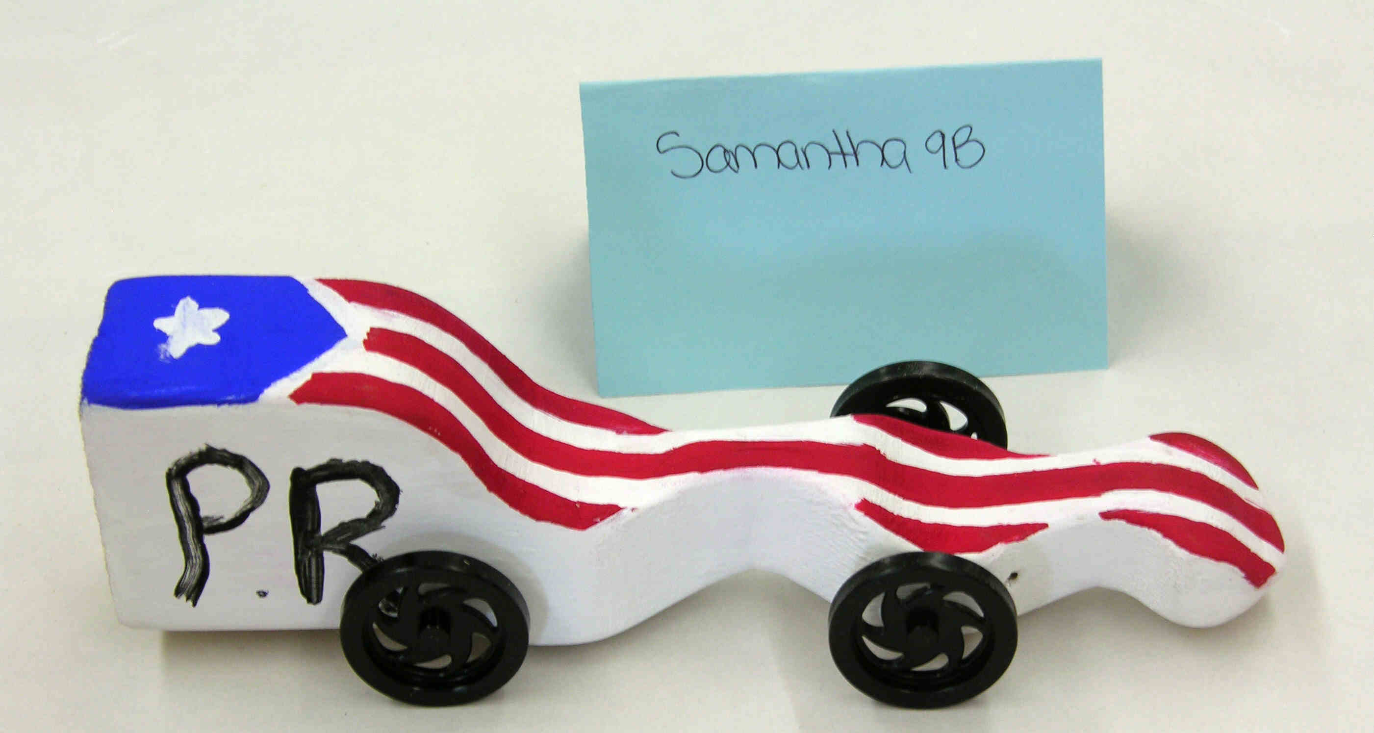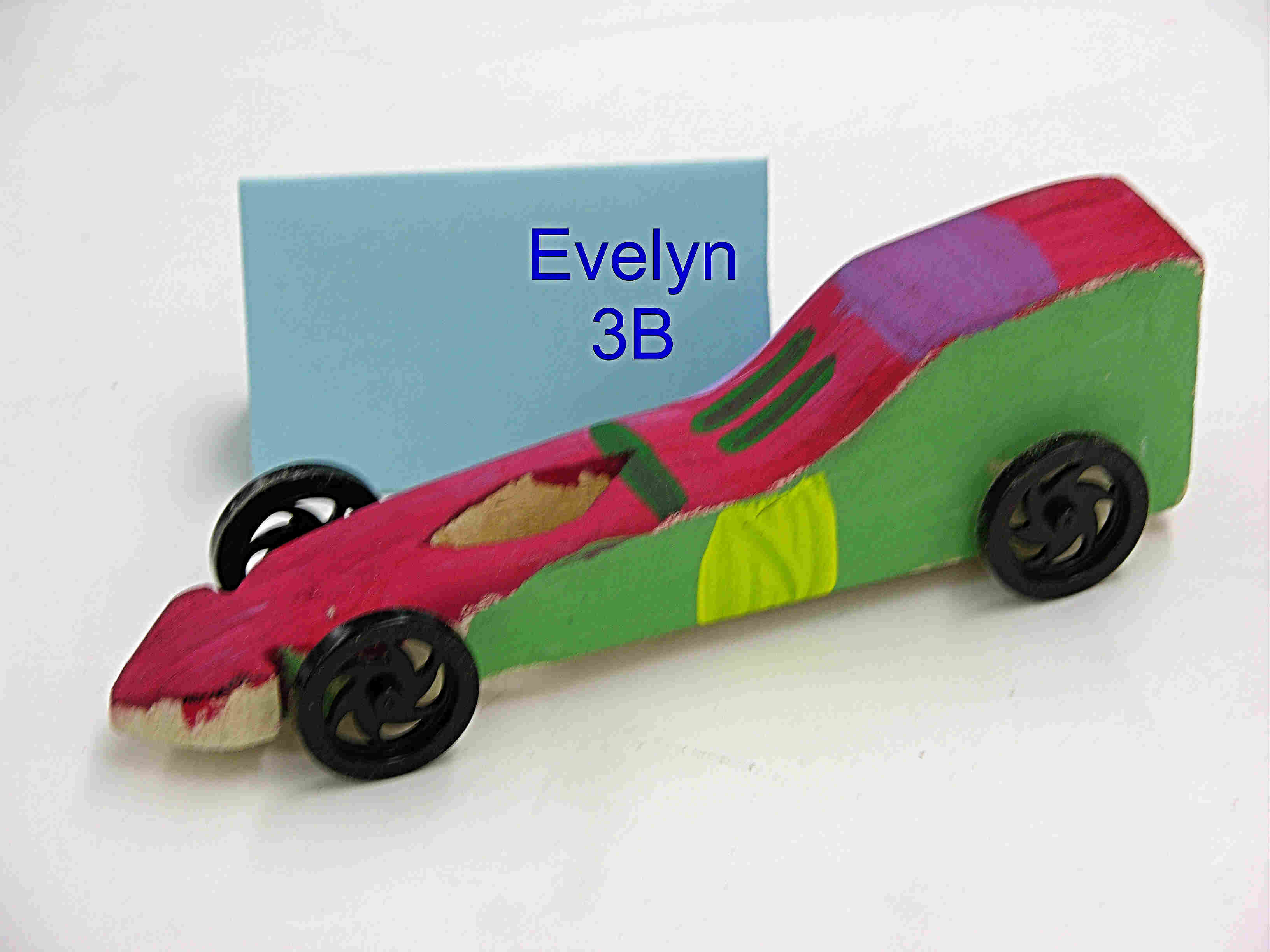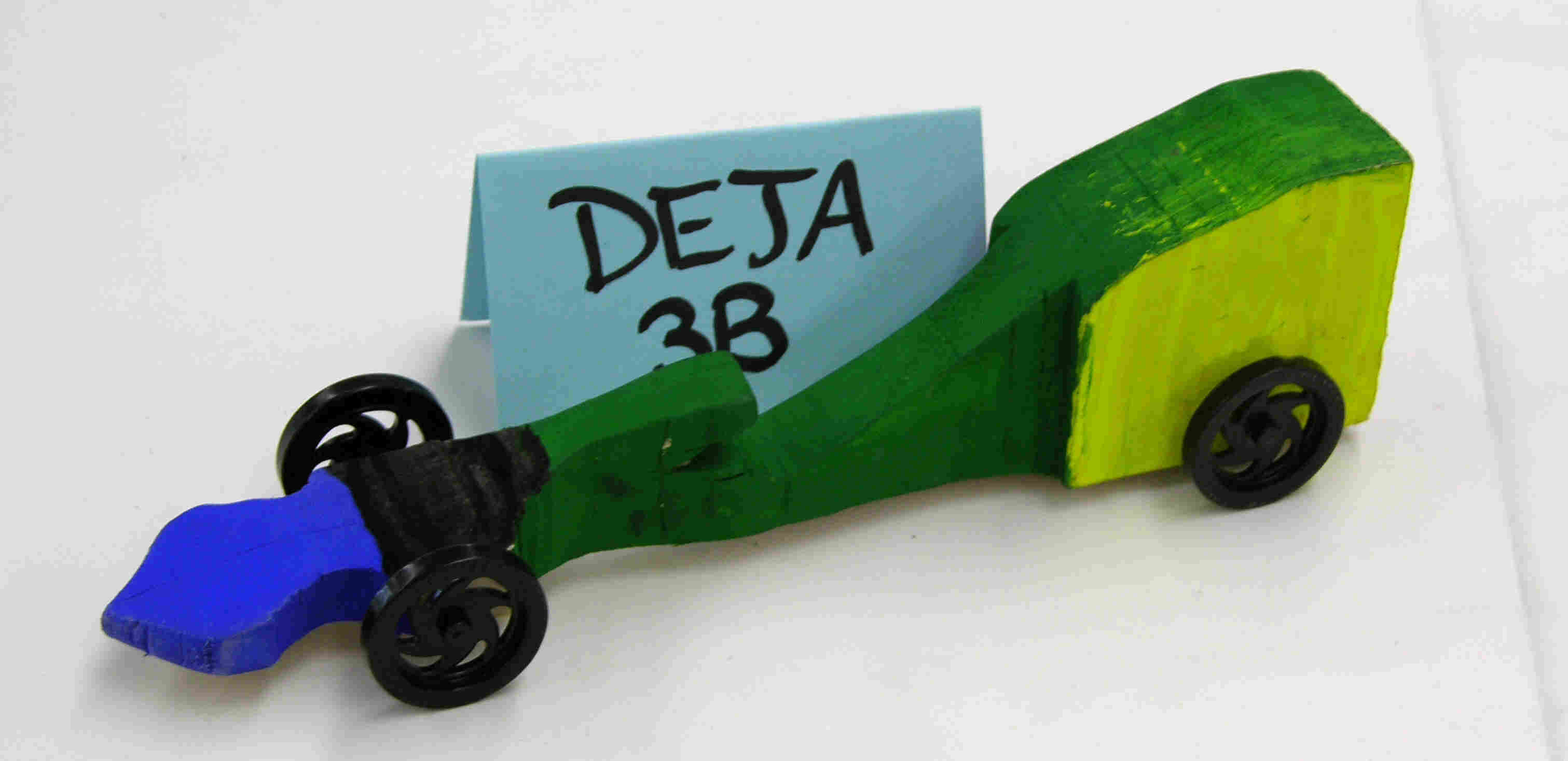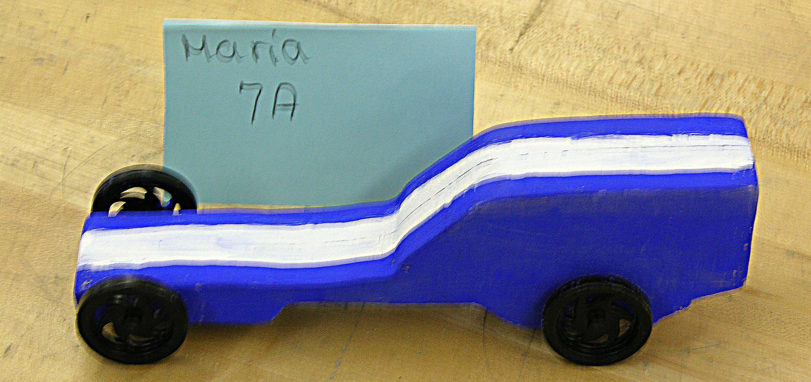 Students start by brainstorming for ideas incorporating aerodynamic designs. Then with a block of wood, they shape it,